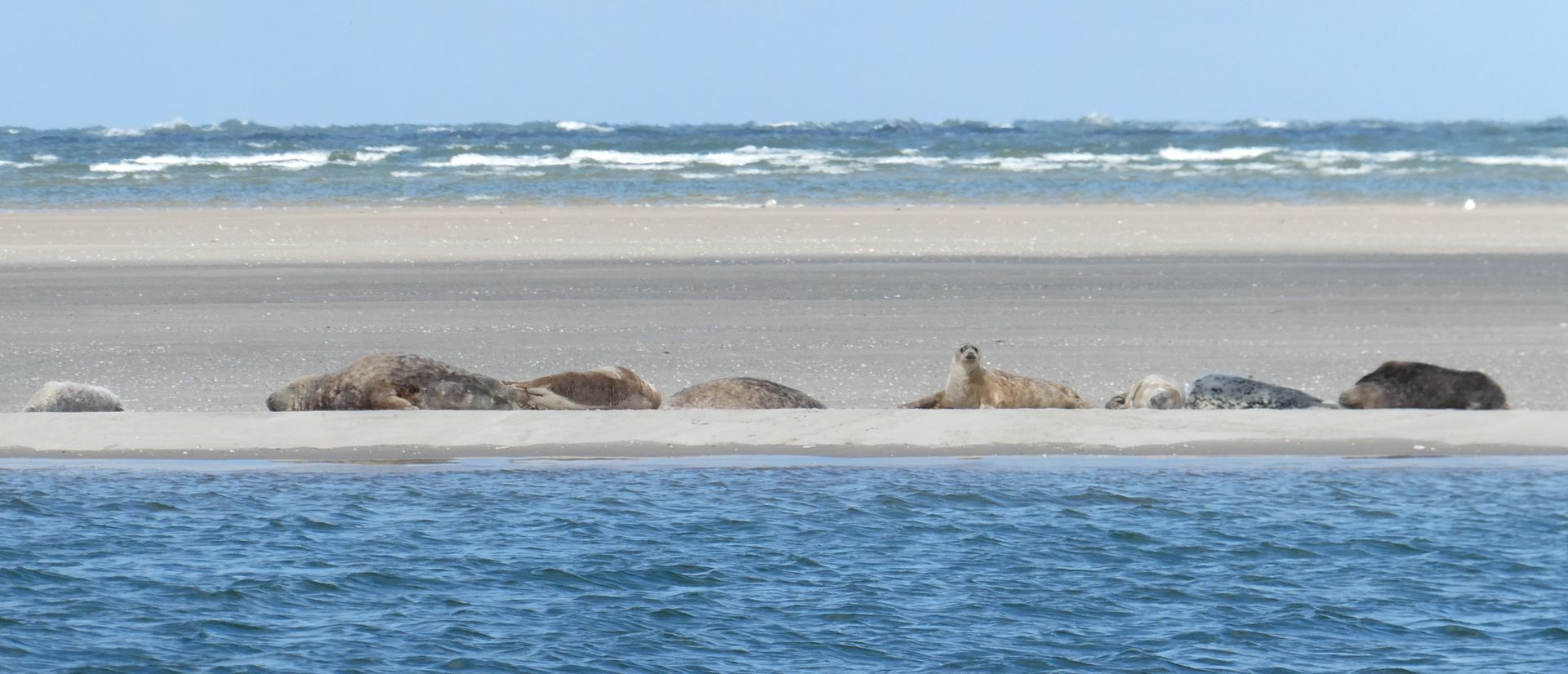 Zon en fris. Om 10.45 gaat de motor alweer bij, we naderen de Blauwe Balg en dat is best wel smal en alert varen is noodzakelijk. De zeehonden en vogelpopulatie lijkt niet te zijn verplaatst of is vervangen door nieuwe vogels en zeehonden, het ziet er geweldig uit.